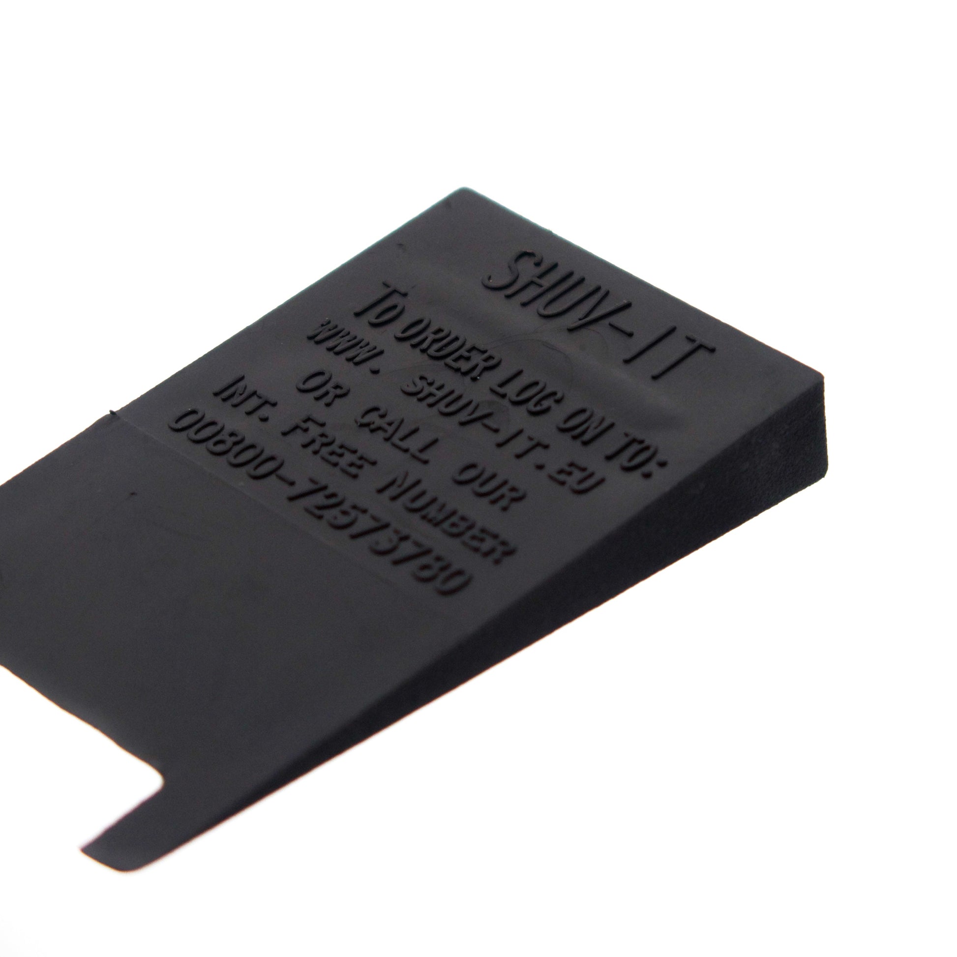 Schuif de tafelwig met de onbedrukte kant naar boven in de ruimte tussen de vloer en een tafelpoot. Een snelle oplossing voor wiebelende tafels. Ook te gebruiken als praktische deurstop!